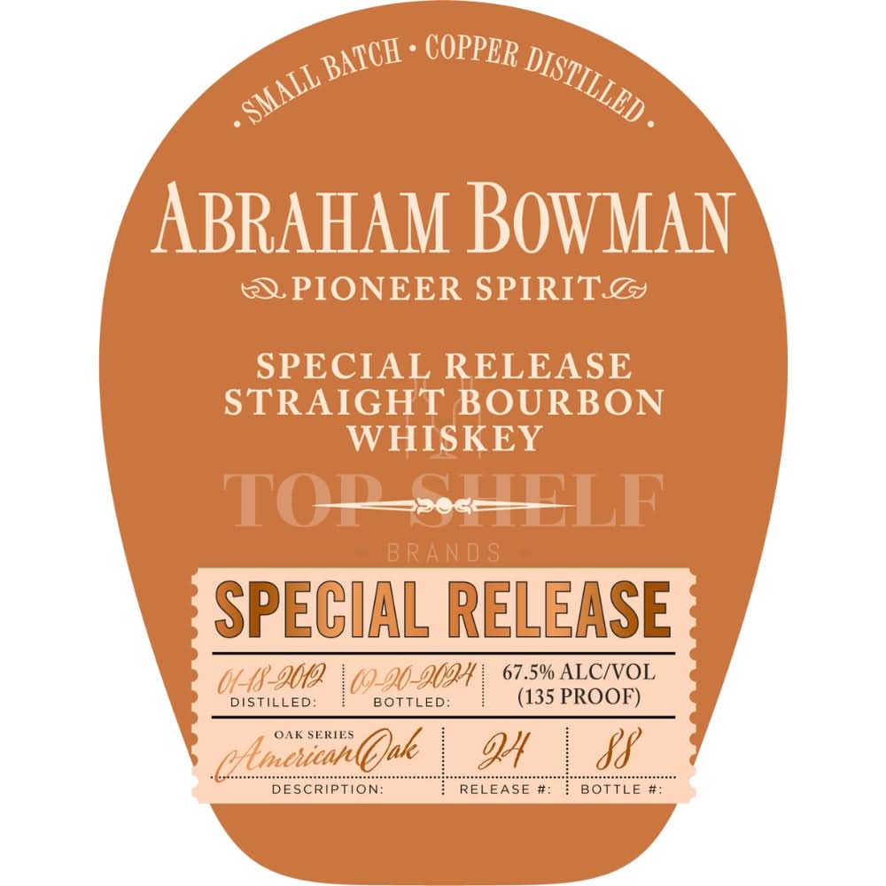Colonel Abraham Bowman commanded the 8th Virginia Regiment, one of the most distinguished fighting units in the American Revolutionary War. He moved his family to Kentucky in 1779 and was among its earliest settlers. Bowman was active in politics and was elected to the first bench of justices in Lincoln County, Kentucky. Later, he represented Fayette County in the Kentucky Constitutional Convention. Colonel Abraham Bowman was the great-grandfather of Abram Smith Bowman, founder of the A. Smith Bowman Distillery. This limited-edition whiskey honors Colonel Abraham Bowman.