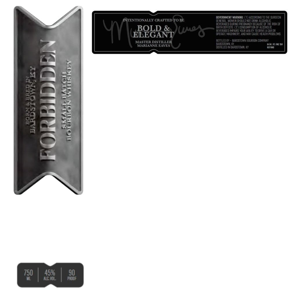 Forbidden Small Batch Bourbon Whiskey was born and bred in Bardstown, KY. Bottled by Bardstown Bourbon Company. Intentionally crafted to be bold and elegant by master distiller Marianne Eaves.