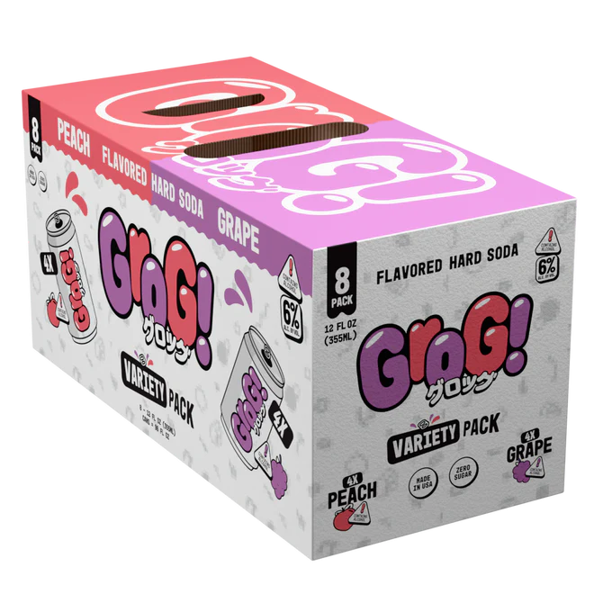 Grog! Hard Japanese Soda Variety Pack 8-Pack brings together two bold, refreshing flavors in one easy-to-enjoy variety pack. You’ll get four cans of juicy grape and four cans of smooth peach, inspired by classic Japanese chūhai but made with a modern twist.