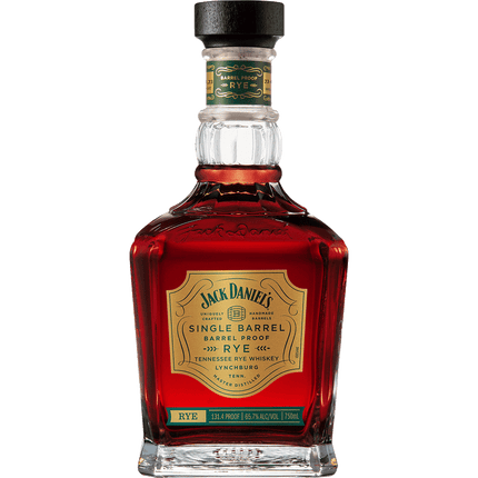 Experience the bold and flavorful Jack Daniel's Single Barrel Rye Barrel Proof whiskey. This 65.25% ABV whiskey offers a nose of spearmint, cedar, and sweet caramel. On the palate, notes of cinnamon, spearmint, and oak. The finish is medium length and features notes of oak, banana, and caramel. Tame the heat with a touch of water and indulge in this deliciously spicy and sweet whiskey.