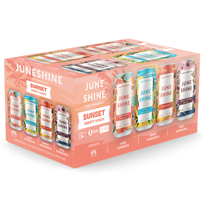 Savor the sights and flavors of the sunset with the Juneshine Hard Kombucha Sunset Variety Pack. Featuring 8 cans with four distinct and refreshing flavors - Grapefruit Splash, Mango Daydream, Yumberry, and Black Cherry Breeze - it's the perfect way to experience the essence of a sunset. Refreshing, flavorful, and beloved by fans of kombucha, the Juneshine Hard Kombucha Sunset Variety Pack is a must-try.