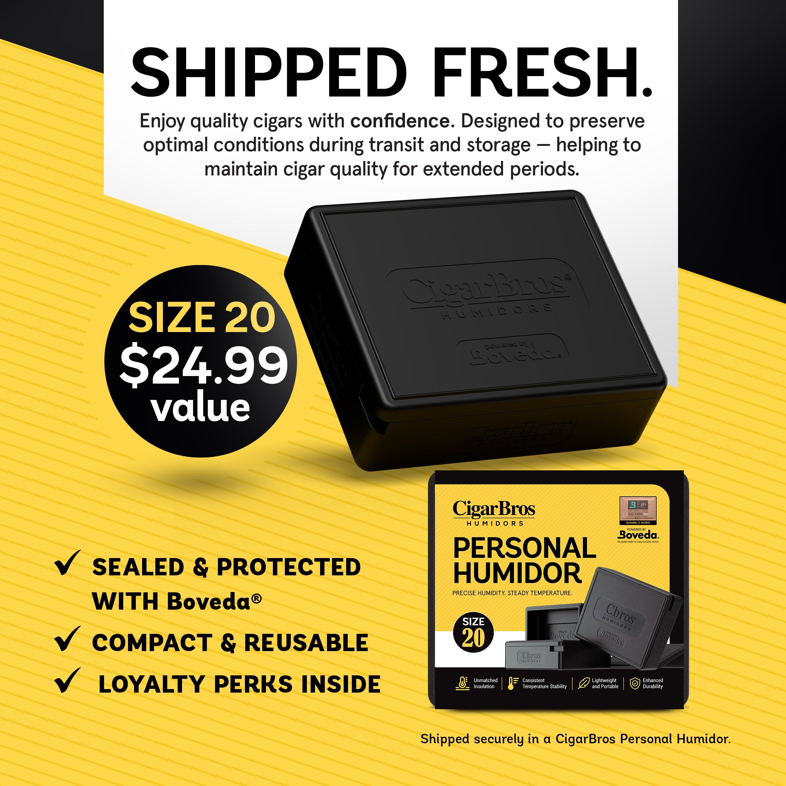Elevate your cigar experience with this premium personal humidor - crafted for flavor, freshness, and convenience. Only from CigarBros.