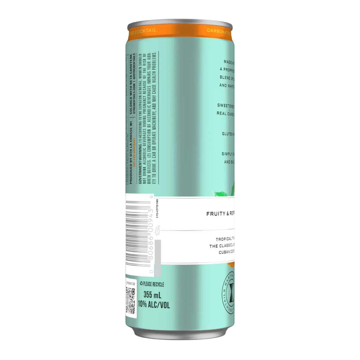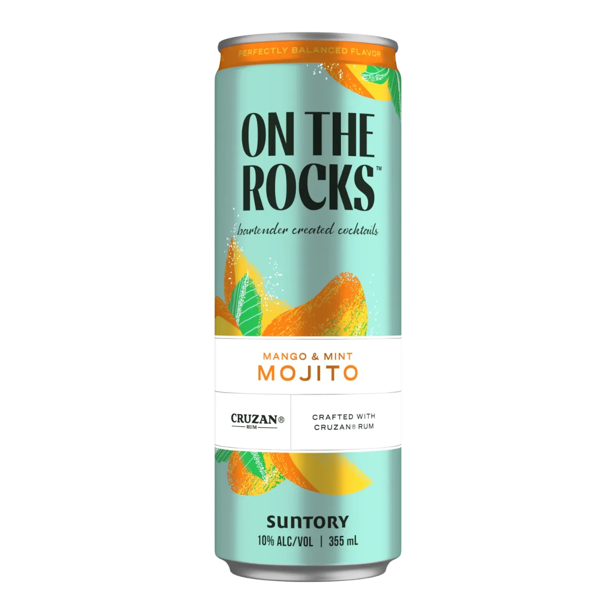 The On The Rocks Cocktail Mango & Mint Mojito (4-Pack) is a sparkling ready-to-drink cocktail crafted with a blend of light and dark Cruzan® rum, real cane sugar, and natural fruit flavors. Juicy mango meets cooling mint and a dash of lime for a lively, balanced mojito experience—no mixing required.