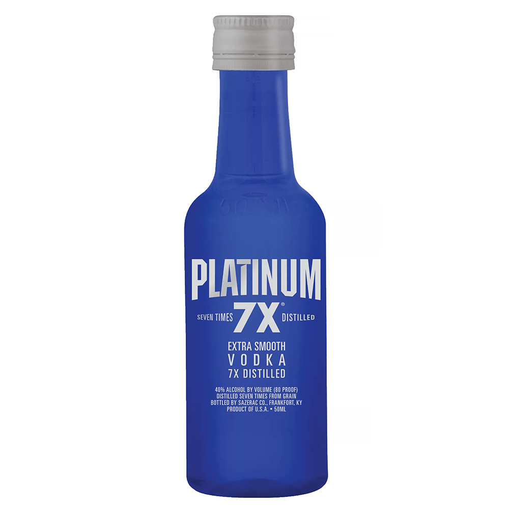 Established in 1996, top selling Platinum 7X delivers an American-made vodka with a smooth, clean and crisp style. With great care and meticulous attention to detail, the Platinum team has been able to craft a truly exceptional vodka, winning back to back Gold Medals at the San Francisco World Spirits Competition. Seven has long been considered a lucky number, but we think it’s also the smoothest. Distilled seven times from American corn for exceptional purity and a consistently smooth finish, Platinum 7X is perfect for sipping chilled or mixing in cocktails. Or, bring a sleek, blue bottle to your get-together or tailgate for 7X the fun!Platinum 7X Vodka 10/50mL