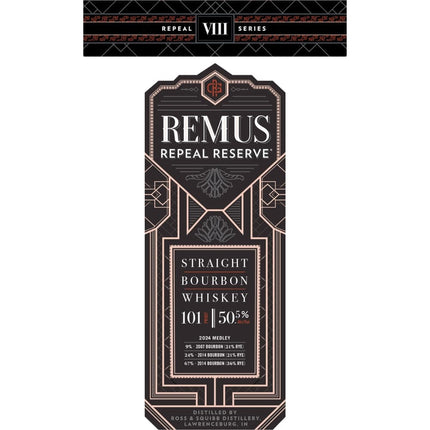 To commemorate this milestone, we created Remus Repeal Reserve. This 2024 limited edition bourbon leads with aromas of cherry and candied pecans, with a hint of leather. The initial taste includes maple syrup and cherry, followed by fig. The finish offers vanilla and oak, with lingering notes of baking spice. In short, Remus Repeal Reserve is the best we make. Or as Remus himself might have said, “some damn fine giggle water,” Enjoy!
