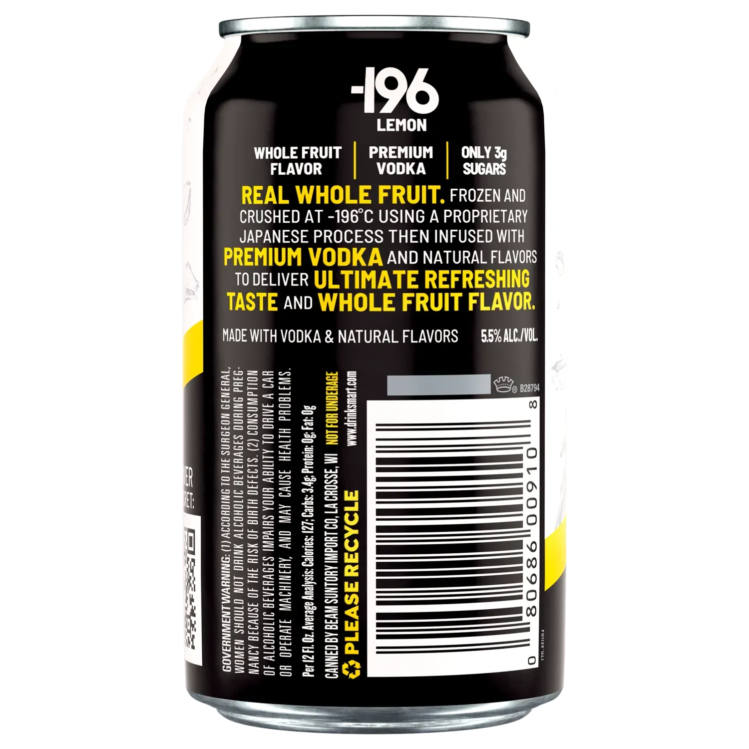 The 196 Vodka Seltzer – Lemon (4-Pack) delivers real lemon flavor with a clean vodka kick—thanks to a unique Japanese freeze-crush method. Whole lemons are flash-frozen at –196°C, crushed, and infused into premium vodka for a bright, citrus-forward taste that’s anything but ordinary.