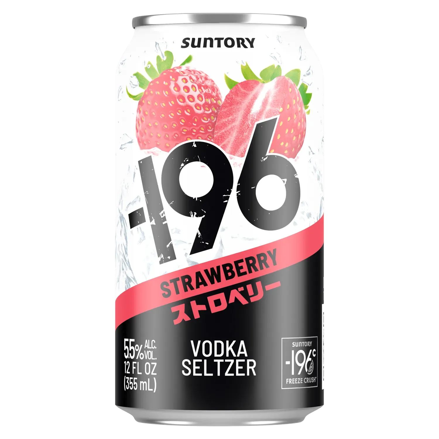 The 196 Vodka Seltzer – Strawberry (4‑Pack) features ripe, real strawberries infused into premium vodka using Minus‑196’s signature freeze‑crush method. Whole strawberries are flash‑frozen at –196°C, crushed, and steeped to preserve vivid flavor and natural sweetness without added sugar.