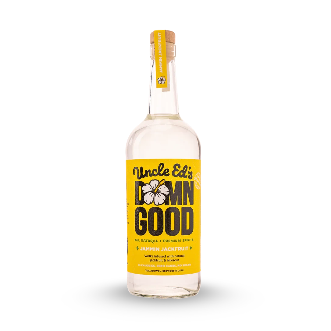 Uncle Ed's Jammin Jackfruit Vodka offers a tropical and floral aroma with hibiscus notes balanced by pineapple and mango flavors from ripe jackfruit. Made in America, this ultra-smooth spirit is distilled from gluten-free corn and pure Artesian Rocky Mountain Spring Water. Free from sugar, gluten, and carbs, it contains 30% alcohol by volume (60 proof) and only 73 calories. Environmentally friendly and non-GMO, it supports sustainability and positive global initiatives. Perfect for a clean, flavorful vodka experience with a unique fruity twist.