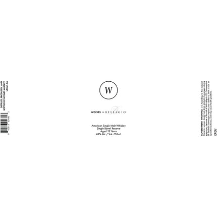 Wolves Whiskey and Bellagio join forces to present this 13-year-old American single malt, a luxurious Single Barrel Reserve that epitomizes elegance and precision. Aged to perfection, this whiskey offers a rich and complex profile that speaks to its carefully crafted journey. Produced, distilled, and bottled entirely by Wolves Whiskey, this exclusive release reflects the timeless sophistication of Bellagio, making it a standout for collectors and connoisseurs seeking a truly unique expression.